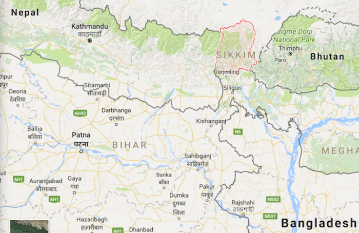 锡克基姆的前王国,现在是印度州,坐在尼泊尔和不丹之间。谷歌地图