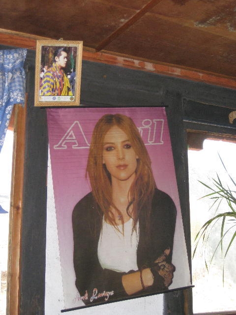 传统和现代的碰撞:第五任国王、现任国王吉格梅·凯萨·纳姆耶尔·旺楚克(Jigme Khesar Namgyel Wangchuck)在路边的一家小咖啡馆里坐在艾薇儿·拉维尼(Avril Lavigne)的上方。照片:Linda Pannozzo