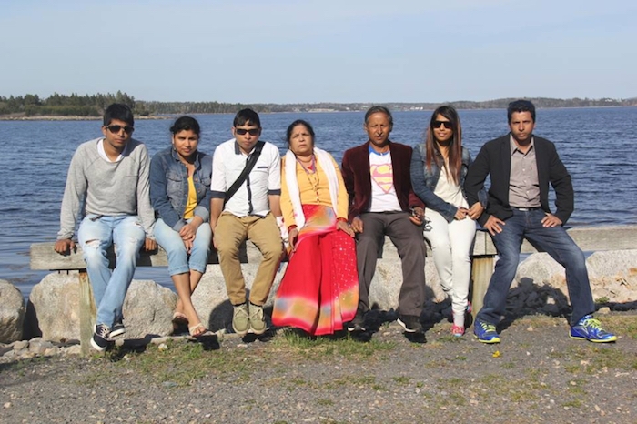 Narayan Dhungana的家人。Narayan从左边是第三名。哈利法克斯。照片由Narayan Dhungana提供