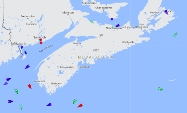 格兰达梅丽莎,油轮,昨晚到了超级,今天驶向海。Nova Scotia中使用的大部分汽油通过帝国油码头,但少量通过超声波。