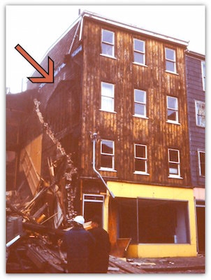 在我的最后一篇博客中,我谈到了1983年拆除的王子和格兰维尔街角的一些建筑物。我在周日早上去了街市,拍了最后一张外观,看着一个大的反铲把它们拉下来。