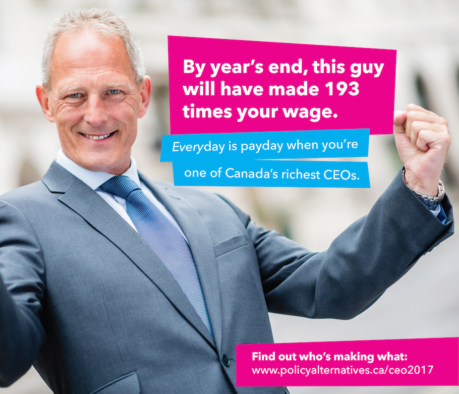 截至1月3日上午11点47分,也就是新年的第一个工作日,多伦多证券交易所指数(TSX Index)中加拿大收入最高的100位首席执行官的平均“收入”已经相当于加拿大工薪阶层全年的平均收入。