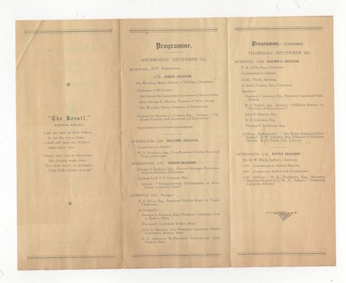 在它1919年11月27日会议,哈利法克斯市议会审议了工业发展和旅游业,内容如下: