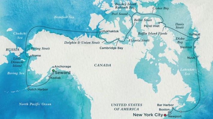 水晶宁静号游轮昨天离开了阿拉斯加的诺姆,这是一次史无前例的穿越西北航道的巡航的第一站。这艘船星期二离开阿拉斯加的苏厄德,在科迪亚克岛和荷兰港停留,昨天在诺姆停留。在诺姆之后,它在维多利亚岛有两站——西北地区的乌鲁克哈托克和努纳武特的剑桥湾——然后到达巴芬岛的池塘湾。通过航道后,“宁静号”将访问格陵兰岛的三个社区——伊卢利萨特、西西缪特和努克——向南,绕过哈利法克斯,前往巴尔港、波士顿和纽波特,最后抵达纽约。