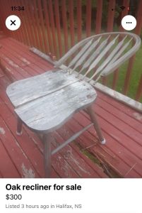 这是一个令人发指的列表——肯定是一个笑话——但我对将一把破木椅标价300美元作为躺椅的创意和大胆表示赞赏。资本主义只是激发出人们最好的一面。