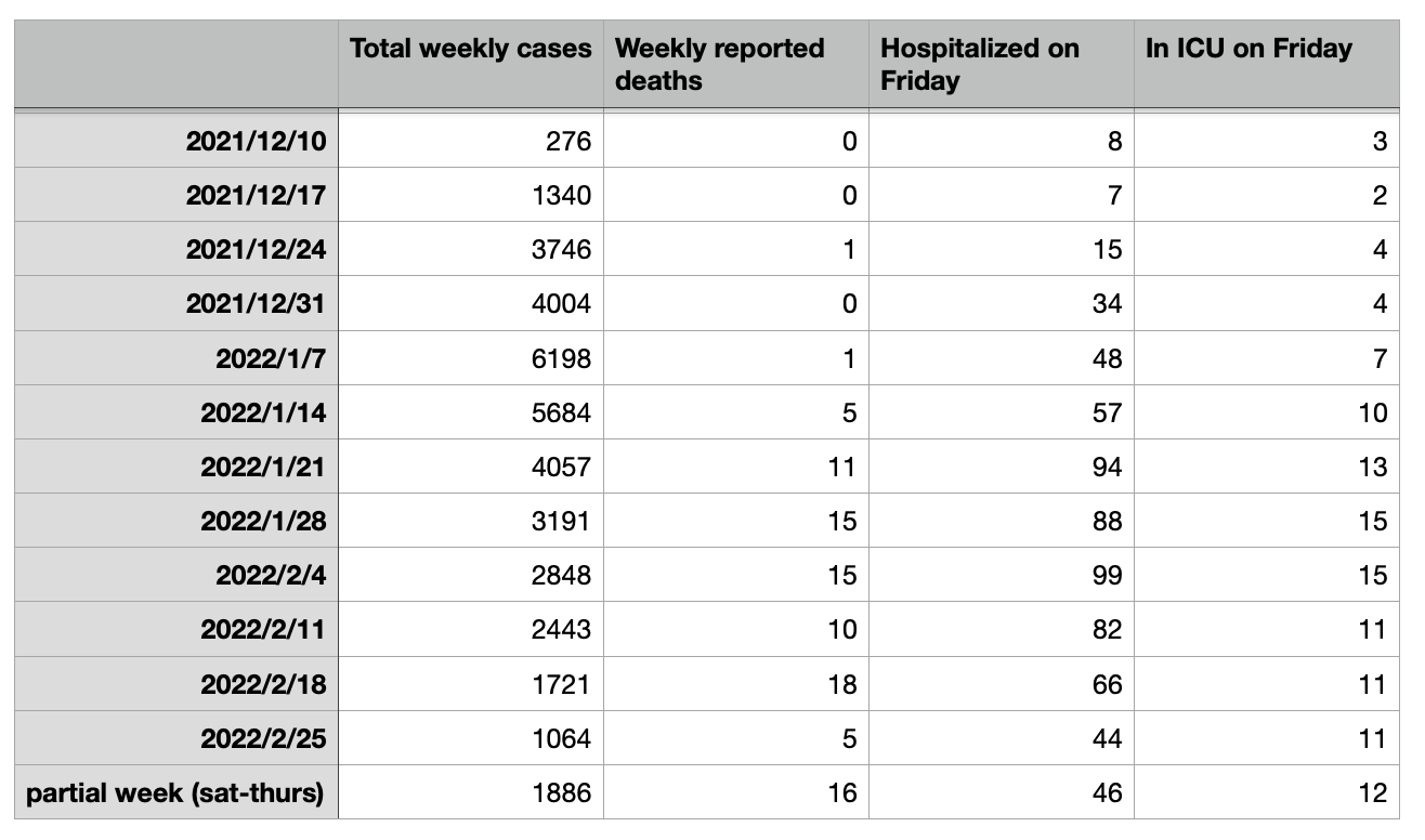 截至昨天,据报道,新斯科舍省本周已有16人死于COVID。我的周六到周五的表格还剩一天,但到目前为止,本周是大流行期间死亡人数第二高的周死亡人数——仅超过2022年2月12日至18日那一周,当时报告有18人死亡(2020年5月2日至5月8日那一周也有16人死亡)。