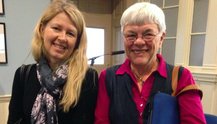 Jacquelyn Shaw(左),生态行动中心研究员,Lydia Sorflaten,市民反对焚烧轮胎。照片:珍妮弗·亨德森
