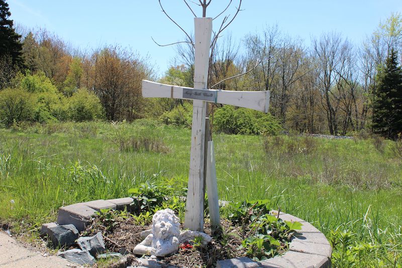 玛丽·伊丽莎白Chaulk的路边纪念馆,一辆被汽车撞到的少年,并在波特兰街杀害。照片:贡献