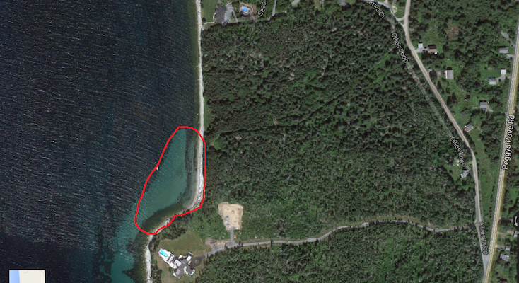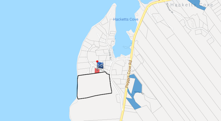 哈克茨湾地区的地图,上面列出了埃莉诺·麦凯恩的房产。地图:viewpoint.ca