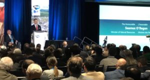 自然资源加拿大部长Seamus o'Regan在PDAC 2020的拥挤房间里发言。