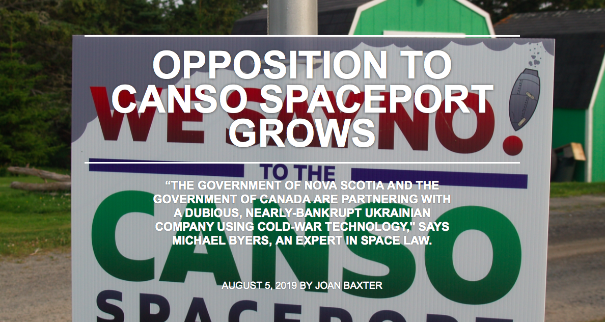 在进城的路上,我看到许多标志牌贴在柱子上和草坪上,上面写着“我们对坎索航天港说不”。