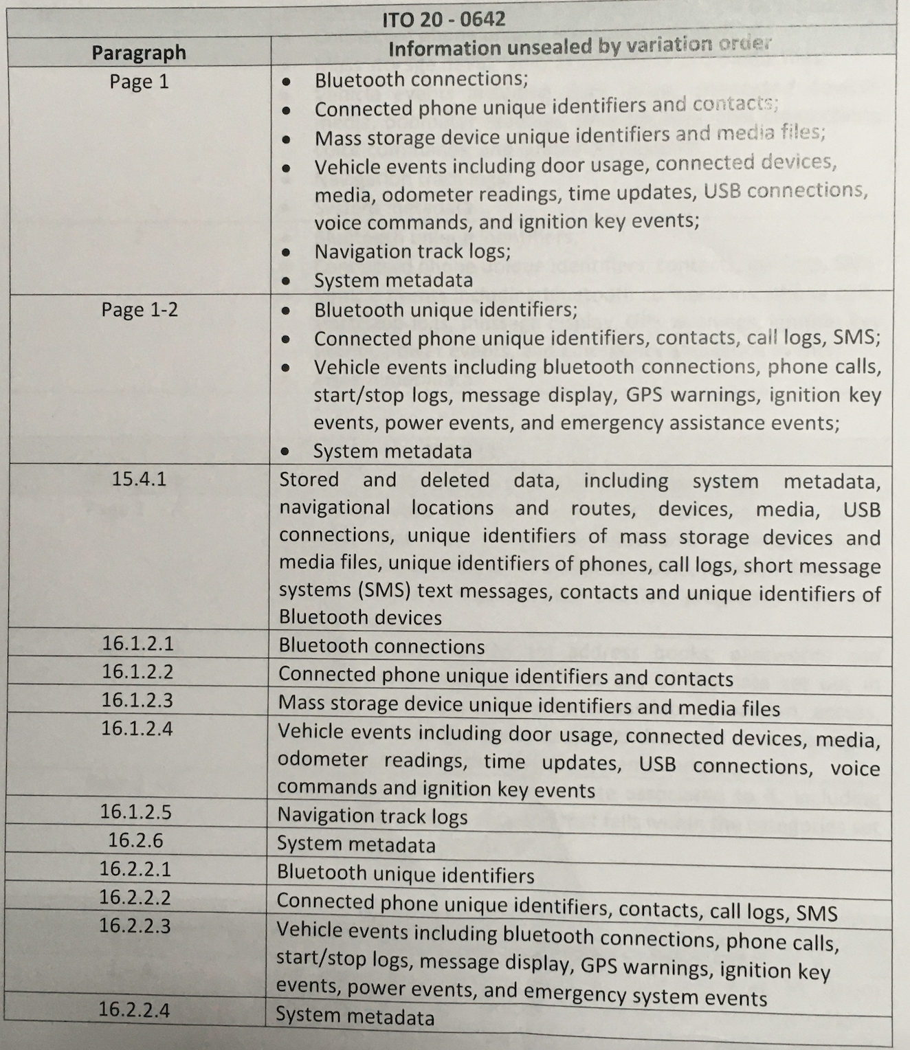 I mean, come on, we all watch cop shows on TV; we know how it works. The lab with the woman with the wild glasses takes the computers apart and plugs the drive into another computer, and then downloads all the information: the GPS info, tracing the cars’ journeys; texts and phone calls made; phones that were connecting to the cars’ computers, and so forth.