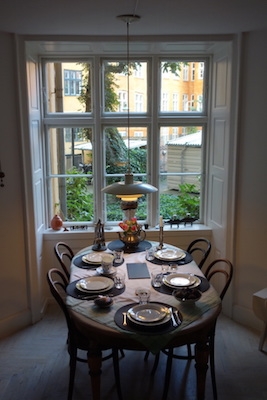 On our fall visit to Copenhagen we asked people about hygge but it seemed to be something they understood and lived and did not think too much about. Tasteful surroundings and a populace who are among the happiest in the world handles a lot of it. In this photo the friend we were staying with in Copenhagen had set the table for lunch with friends. The food was as tasty as the setting.
