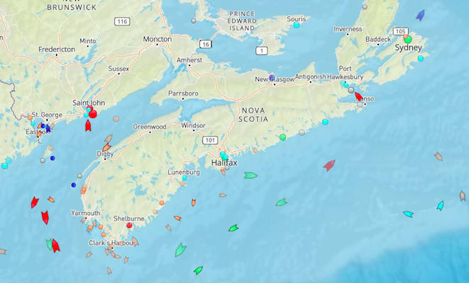 早上6点:Oceanex三趾鹬,滚装集装箱,从圣约翰到达41号码头