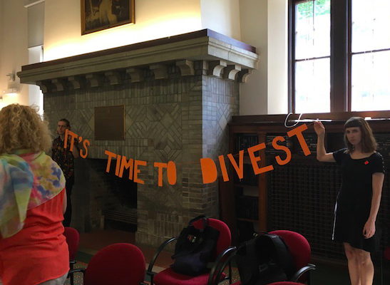 Despet Dal的员工出现在昨天的董事会会议上,继续他们对该大学拒绝从化石燃料公司剥离的沉默但一直存在的抗议。