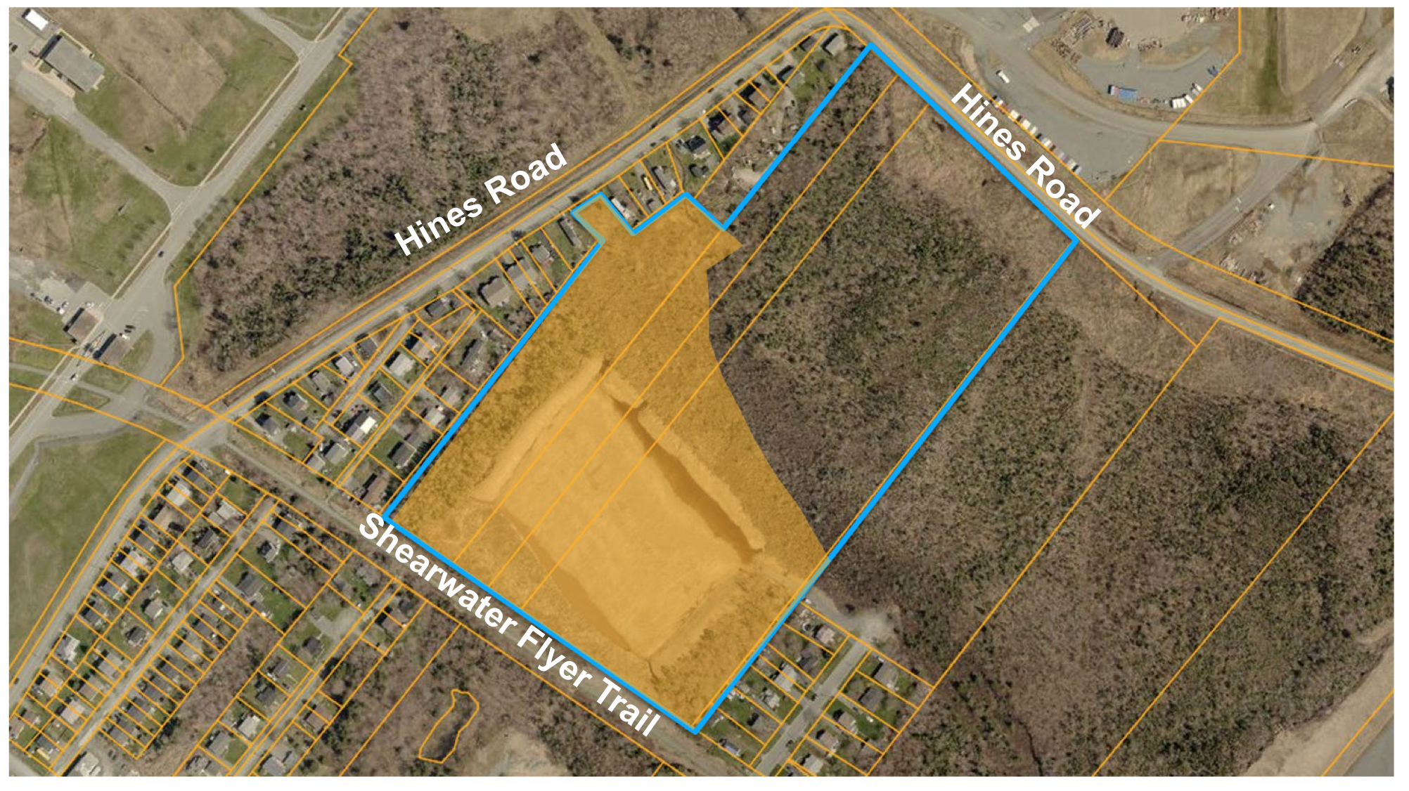 这处房产是一个形状奇特的地块(实际上是四个地块,被认为是一个),就在穿过Shearwater Flyer Trail后的Hines Road的急转弯处。员工报告解释说,ARMCO已经尝试开发该物业一段时间了:
