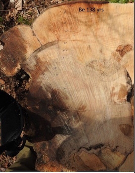 一部分击倒美国山毛榉树,达到138岁。照片:Bev Wigney