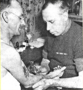 的parlour’s proprietor was one Professor Charles Snow, an English expat who learned his trade by practicing on himself as a sailor in World War I. (He kept his 300 tattoos hidden under his shirt so as to maintain a respectable appearance in his day-to-day dealings).