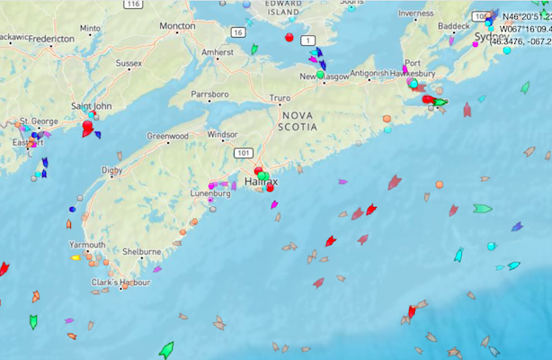 周五上午9点,新斯科舍附近海域。地图:marinetraffic.com