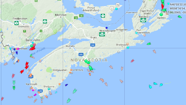 围绕新斯科舍省海域,周五上午10点。地图:marinetraffic.com