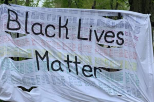 Regis Rally正义的横幅。照片:Amanda.