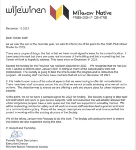 Mi 'kmaw土著友谊中心的收容所工作人员正在谈论最近宣布关闭该中心北公园街收容所的消息。
