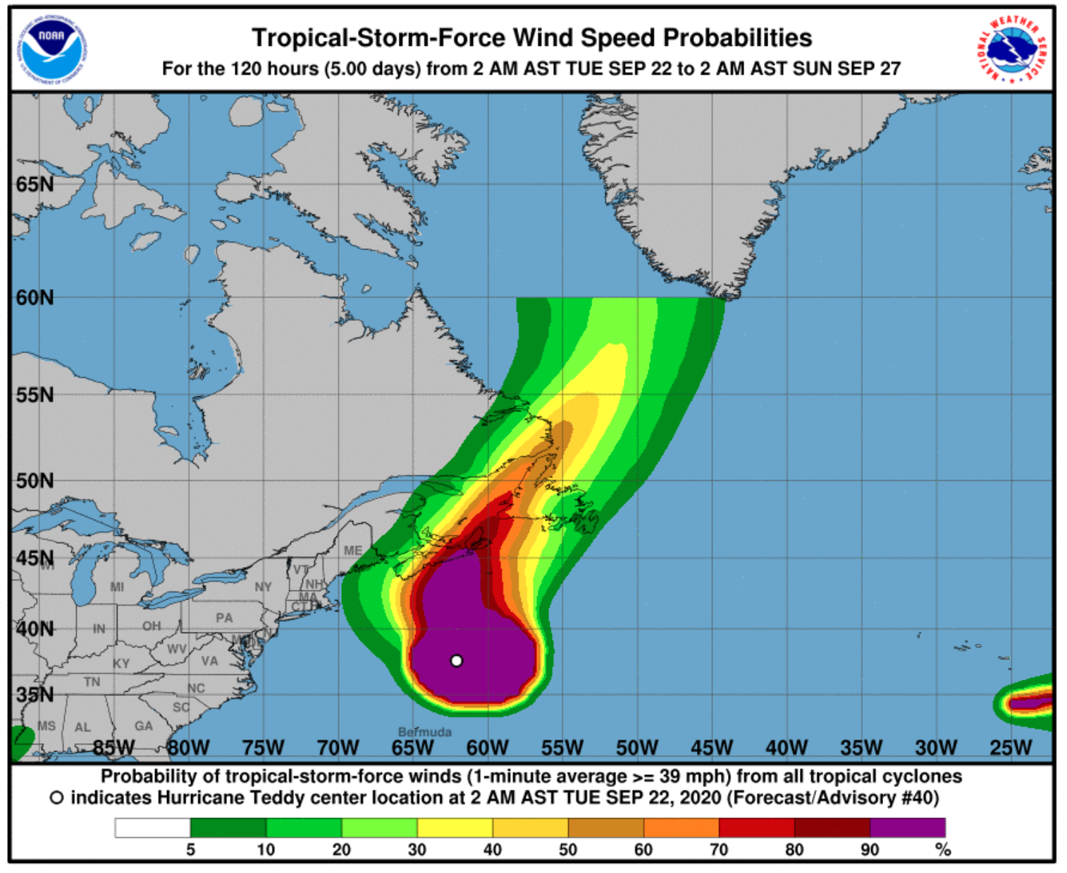 鉴于与泰迪相关的公海,船舶今天正在避免哈利法克斯港。
