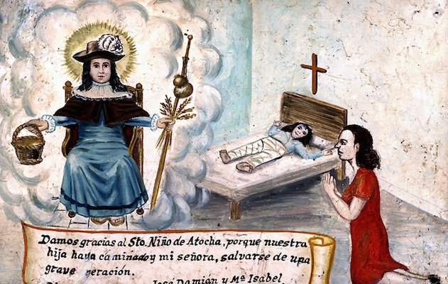 在墨西哥的教堂和神社里,你有时会看到大量记录各种事故的“前事”。