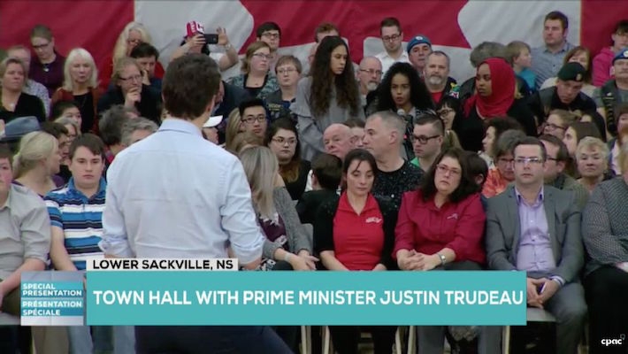 麻醉是怀孕七个月,并且应该在卧床休息。当她听到Trudeau将在下萨克维尔的一个城镇厅时,她坚持要讨论他,试图拯救她的兄弟。