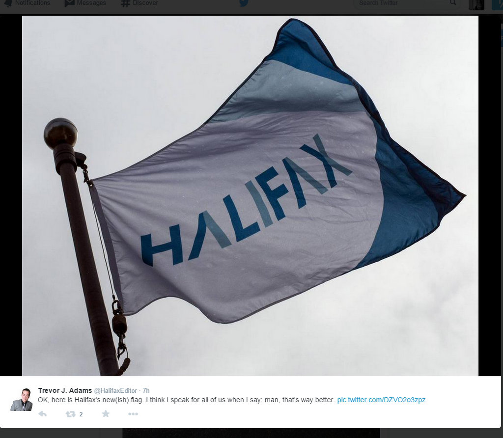 现在有一个新的旗帜,其中哈利法克斯杂志编辑特雷弗亚当斯正在推特昨天推文,但这不是官方国旗。即使是违反了规则。
