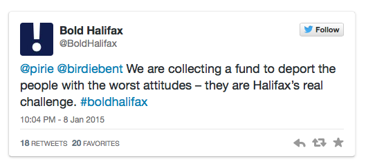 大胆地说,使用标签的推文会自动发布到大胆哈利法克斯网站这一页现在充满了严厉、有时甚至是滑稽的批评和嘲弄。