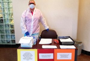 在哈利法克斯,新冠病毒筛查人员迎接进入家庭执业协会的人们。照片:伊薇特d 'Entremont