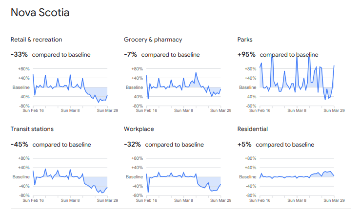 在两周前斯特朗鼓励人们去公园之后——“如果你只是因为旅行而处于自我隔离状态,你感觉很好,没有任何症状,你仍然可以带你的狗去散步,去骑自行车,带你的孩子去公园“ - 麦克尼尔召开那些去公园的人,上周他引用了报告谷歌这表明去公园的人增加了。但这一增幅与1月(1月3日至2月5日)的冻结月份相比,几乎是在宣布全面停建之前,但也是在宣布全面停建之后3月22日,没有与前几年的基线比较,所以没有意义。