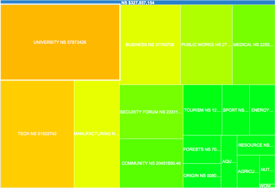 这是有趣的;能源、科技、女性——都很明显。其他的问题就更大了,我最后只对368笔100万美元以上的交易进行了分类。这占了54%的钱。以下是我对这些奖项的分类。这是一所大学,或者提到“技术”这个词: