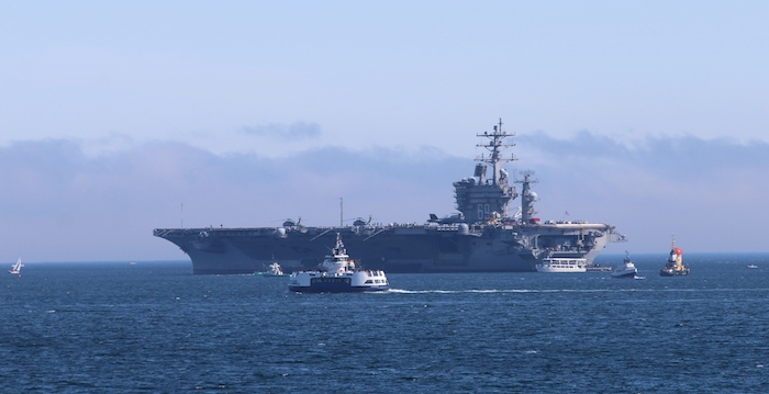 德怀特D。艾森豪威尔昨天到达安克雷奇,很多人都去看了一看。如果你坐伍德赛德渡轮,你可以离它很近。
