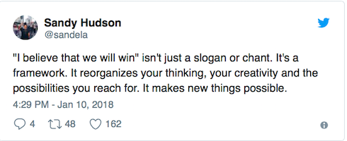 鼓舞人心的一如既往。愿胜利在望。你会赢的,因为你是对的。