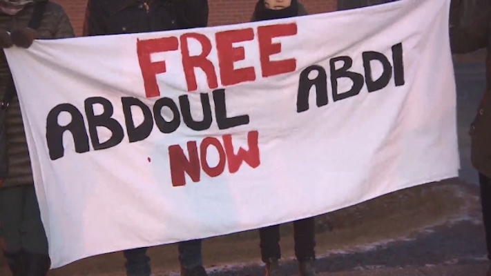 Abdoul的姐姐Fatuma Alyaan来到市政厅。该计划最初只是在外面 - 这一点是让媒体对案件感兴趣,希望记者开始询问关于驱逐出境的特鲁多问题。