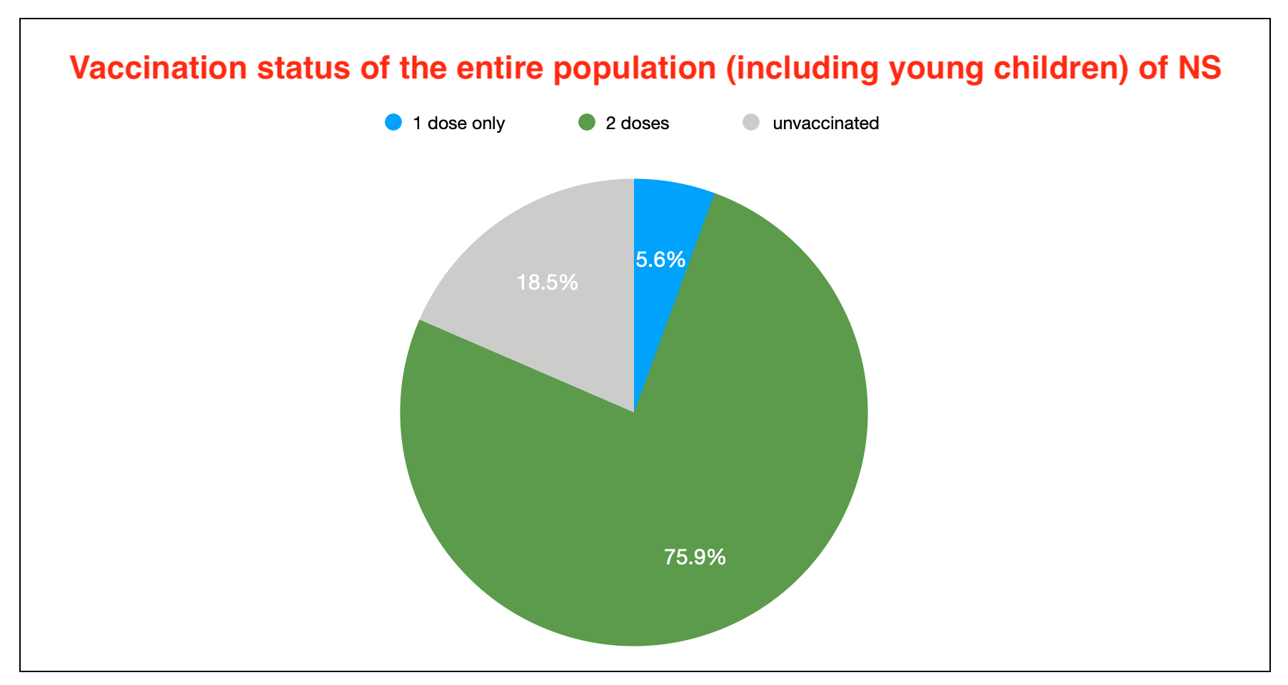 截至昨天,81.5%的人口(包括幼儿)至少接种了一剂疫苗,75.9%的人接种了两剂疫苗。