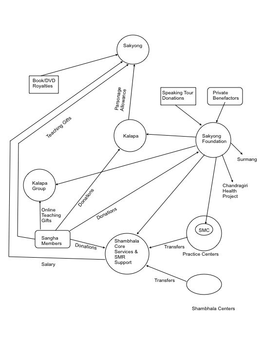 我特别感兴趣的是香巴拉的各个组织是否一直在违反税法。例如,拉德朗教堂在其省级登记处上写着它是一座“教堂”,然而筹集的资金似乎只惠及了一个人——萨扬·米帕姆,我猜是他的家人。香巴拉加拿大协会之前注册为金刚佛教教堂;我不知道为什么要改名。似乎从香巴拉中心收取的许可费或其他费用是通过香巴拉国际运营的,但我不知道这些收入是被申报为商业收入还是慈善性质的。