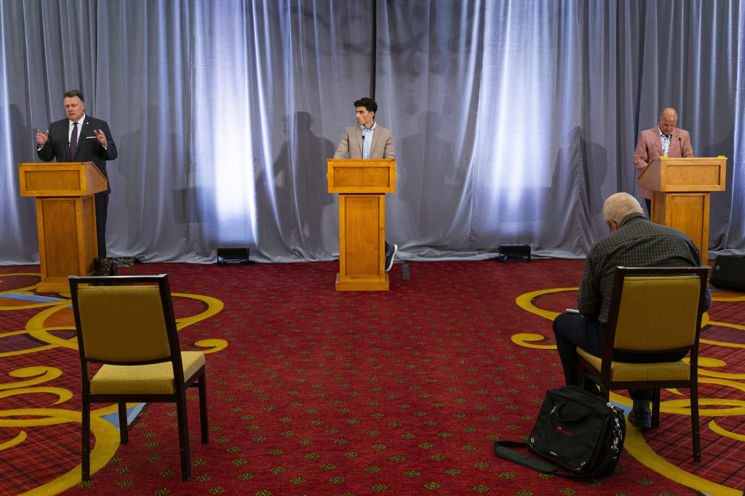 哈利法克斯的三位市长候选人昨天互相辩论,哈利法克斯商业委员会举办的一项活动。