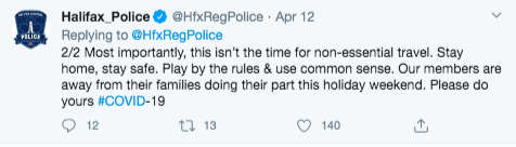 我提醒说,哈利法克斯警察局可能会在4月12日发布这些推文时增加了混乱: