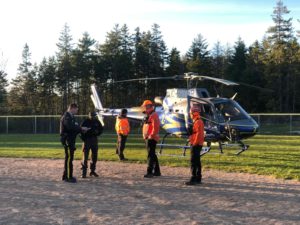 Khamete无法继续行走,所以他们在他们留下来的花岗岩露头上找到了一块岩石。在几个小时的过程中,Khamete通过电话或通过发短信与RCMP官员交谈。最终,他们与之联系哈利法克斯搜索和救援(HSAR)下午3:45左右。RCMP官员在等待的同时保留在他们身上。