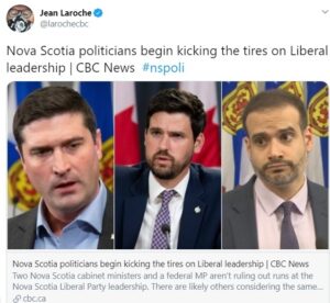 通常的嫌疑人:前三个人说他们正在考虑为新星斯科舍自由领导的奔跑都是男人。照片:CBC / Twitter