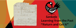 Sankofa是一个adinkra符号,象征着向过去学习的重要性,与口号“返回并得到它”一起出现在新斯科舍省档案馆新在线资源的欢迎页面上,“回顾,前进:记录非洲新斯科舍省人的遗产”。图片:新斯科舍省档案馆