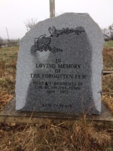 雅茅斯县的一群居民建立了这座纪念碑,纪念阿卡迪亚济贫院的囚犯,他们被埋在这里没有标记的坟墓里。纪念碑位于机场跑道附近,不对外开放。照片:布伦达·汤普森