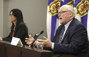 卫生部长米歇尔·汤普森和首席医疗官罗伯特·斯特朗博士于2021年9月14日在COVID通报会上说。图:通信新斯科舍省