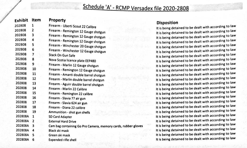 长话短说,RCMP为Laing's House找到了一个搜索权证,在那里他们发现了一套武器: