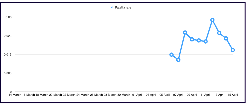 由于恢复的人数在增加,而且最近还没有死亡病例(任何病例都太多,但“只有”3例),死亡率也在下降,降至1.7%。