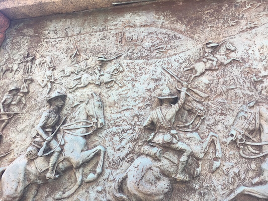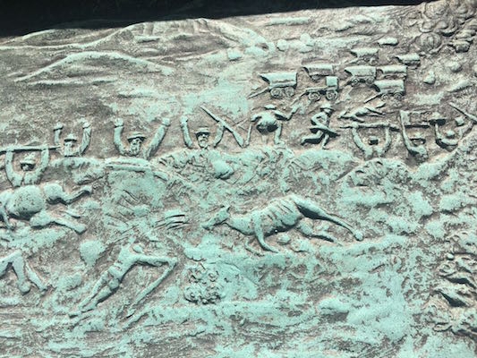 我昨天在午餐时走到纪念碑上,拍了一些面板的照片。关于所描绘的场景是什么,黑色南非人没有任何陈述。