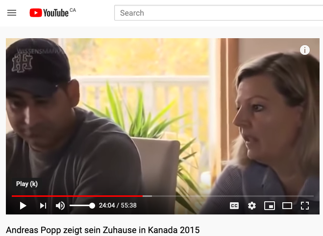 在一个视频名为“安德烈亚斯·波普展示他2015年在加拿大的家”,波普将Breton角和他的社区介绍给有争议的德国评论员迈克尔-弗里德里希·沃格特,他也有自己的在线频道MVTV.在2015年的视频,波普描绘了一幅田园诗般的画卷,把该省描绘成某种人间天堂,那里“犯罪率极低”,他“从未见过一场真正的战斗”。